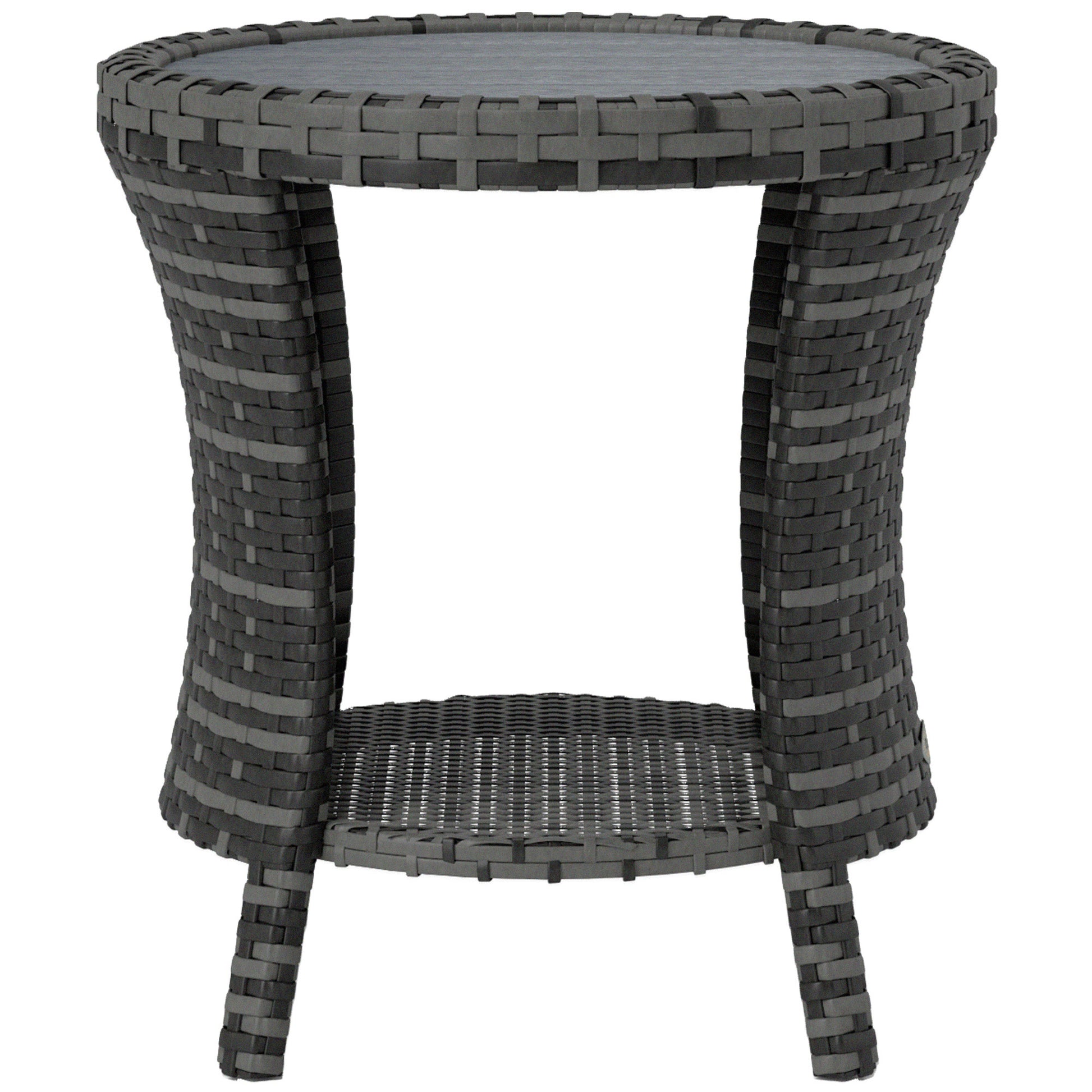 18 Wicker Outdoor Coffee Table, PE Rattan Patio Side Table With 2-Tier Storage, Composite Wood Top, Gray