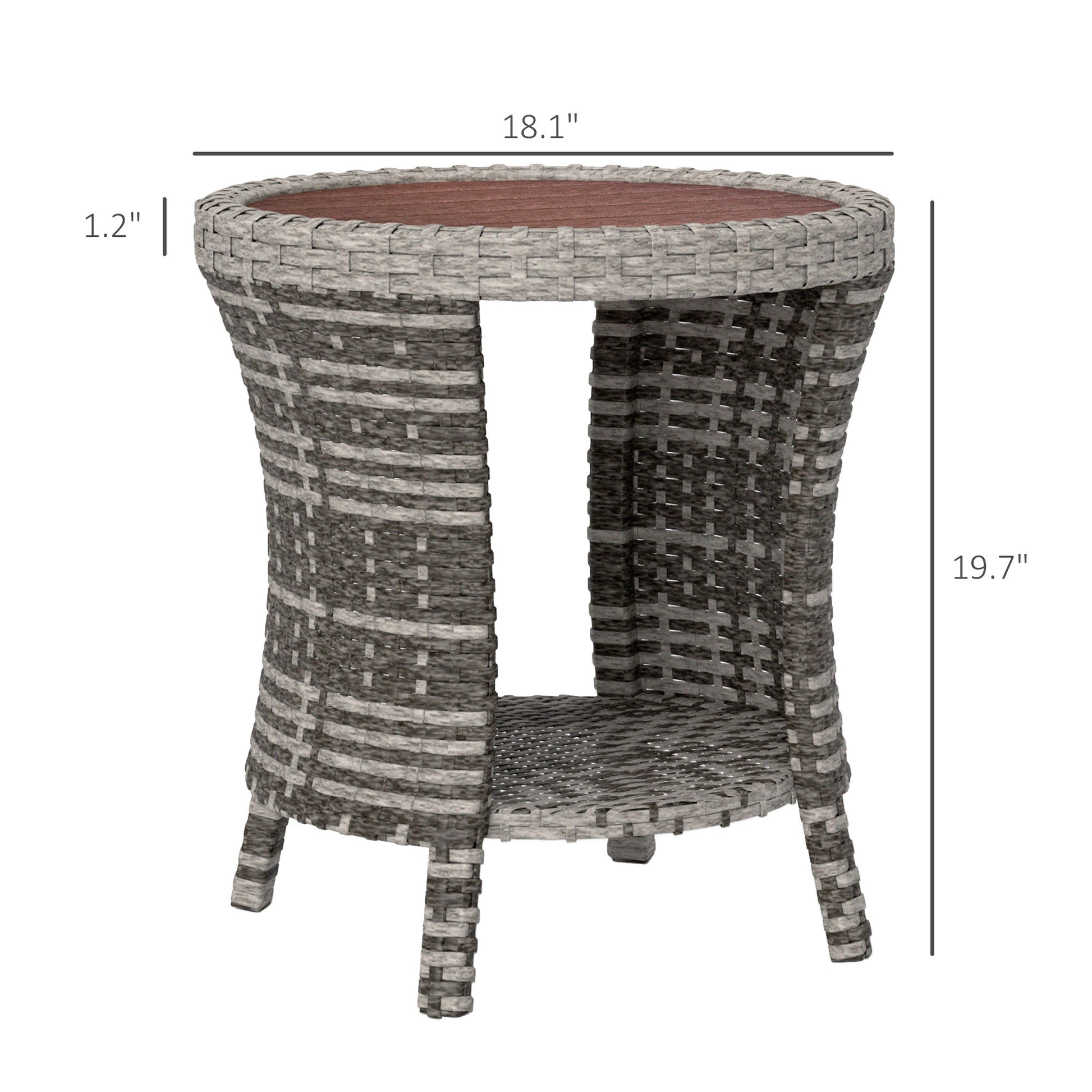 18 Wicker Outdoor Coffee Table, PE Rattan Patio Side Table With 2-Tier Storage, Composite Wood Top, Mixed Gray