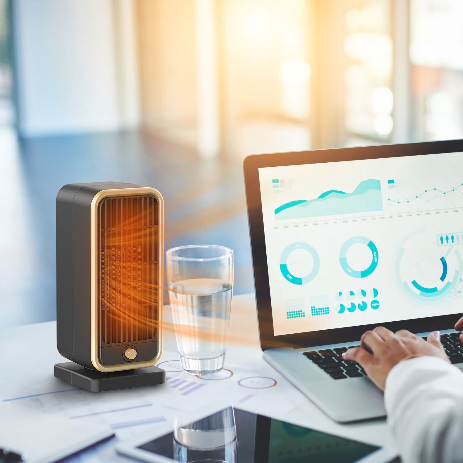 - ** Premium ABS Materials *: Upgrade ABS material applied,which is more flame-retardant. Black main body and gold frame distinguish your space heater from desk gadgets. 4Pcs sponge pads bring much stability.