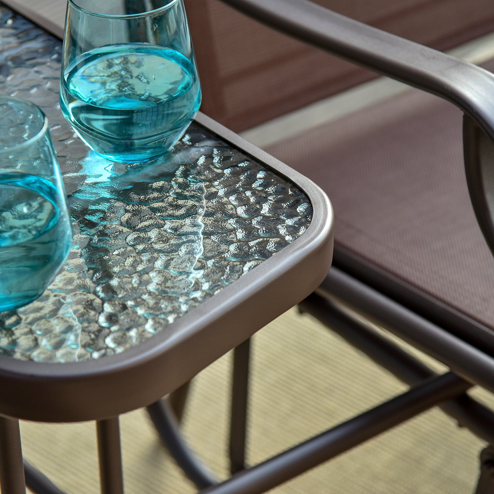 2-Seat Outdoor Glider Swing, Double Independent Rocker Chair, With Center Coffee Table, Breathable Sling Fabric, Coffee Brown