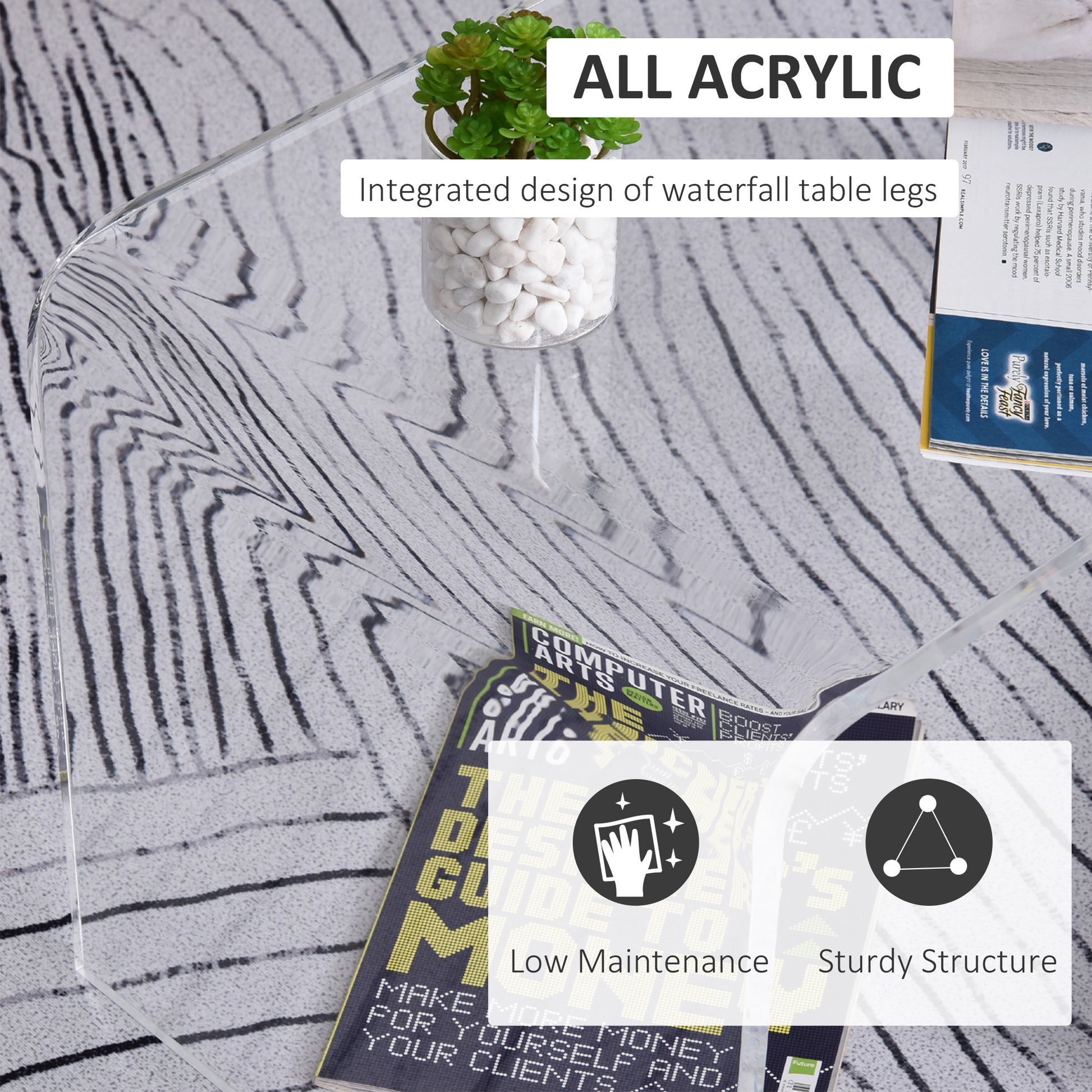 32 Clear Acrylic Coffee Table, 0.5In Thick C-Shape Waterfall End Coffee Table, Multipurpose Lucite Tea Table For Living Room