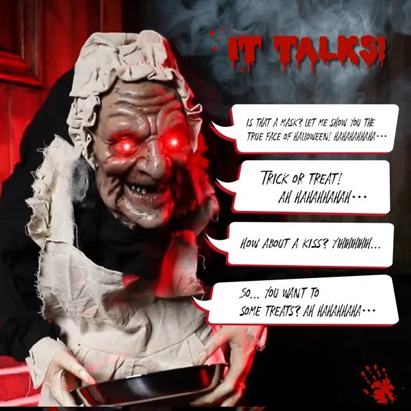 Make your Halloween unforgettable with our 5 FT Halloween Standing Decoration. Perfect for creating a spooky atmosphere in your yard or garden, this eye-catching decoration features built-in LED lights that make it glow eerily at night. It can laugh and make a move when you touch it, adding freshness and a terrifying atmosphere.Quick to assemble and eas