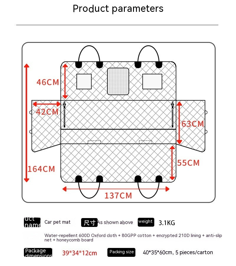 600D Oxford Cloth Waterproof Surrounded Lengthened Load Bearing Car Pet Mat