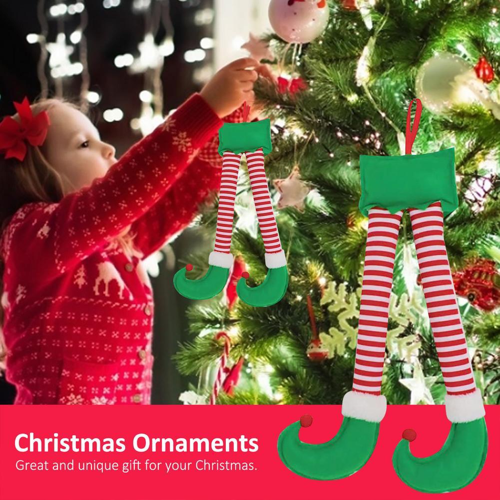 Christmas Elf Legs Decoration Car Trunk Decoration Fabric Red Stripes Big Curved Legs New Year Gift Christmas Ornaments