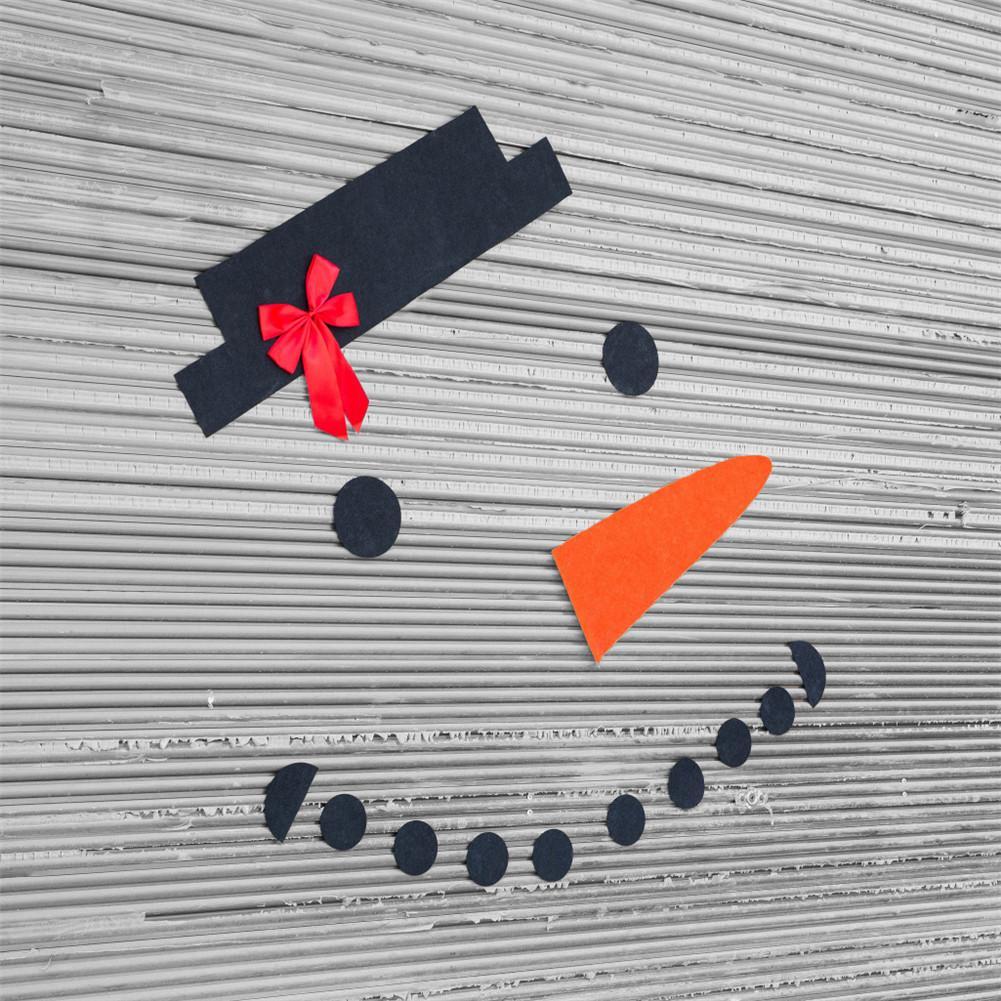 Description: DIY snowman dress (16 sets, hat, bow, 2 big rounds, nose, 8 small rounds, 2 semi-circles, double-sided tape)