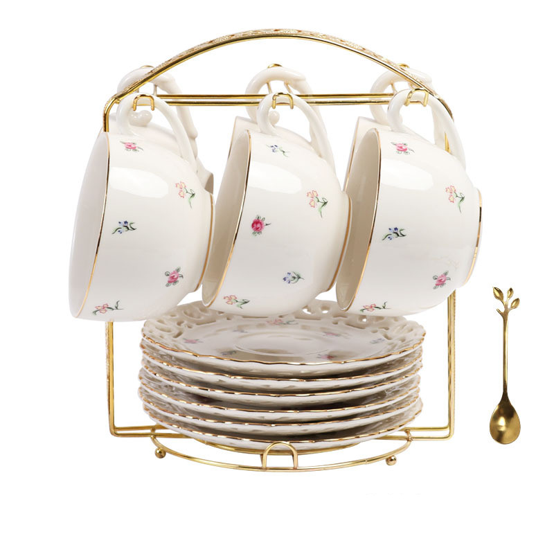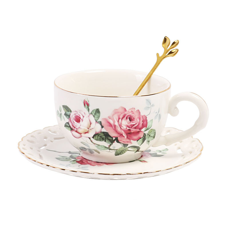 European Style Floral Coffee Cup Set Cup And Saucer Ceramic