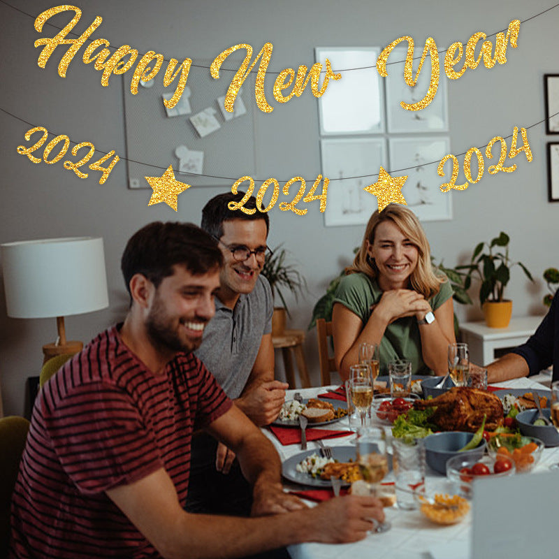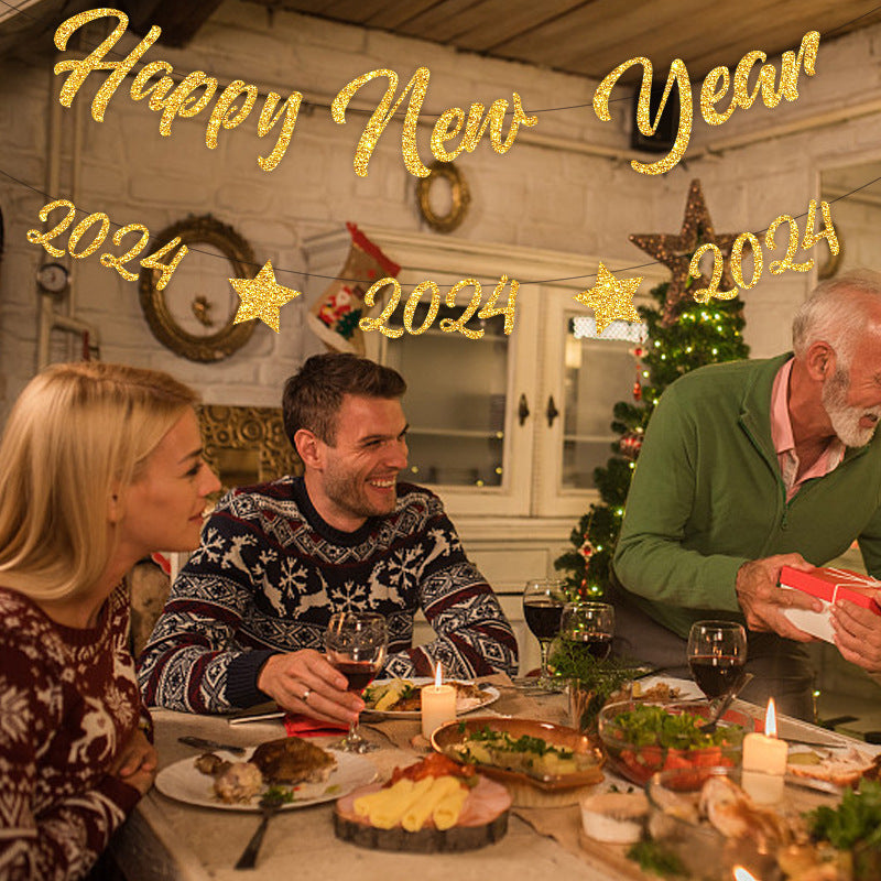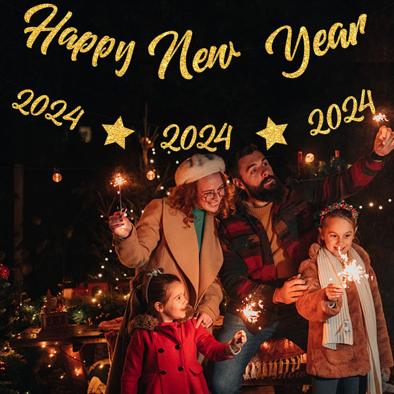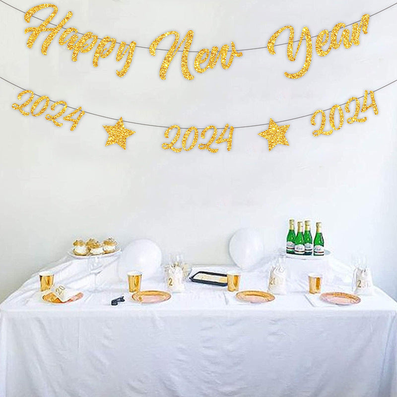 Specification: Golden happy new year hanging flag 2024 five-pointed star latte art