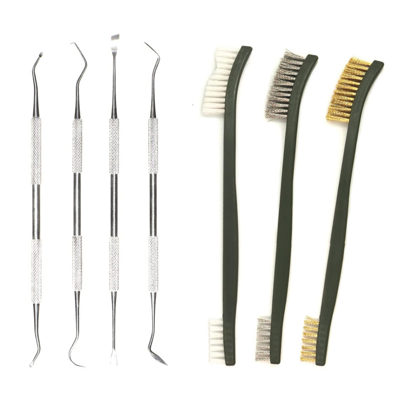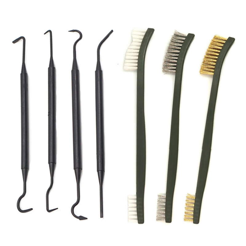 Specifications: 7pc cleaning brush Black (plastic),4pc black cleaning hook (plastic),3pc double head wire brush, 9pc set