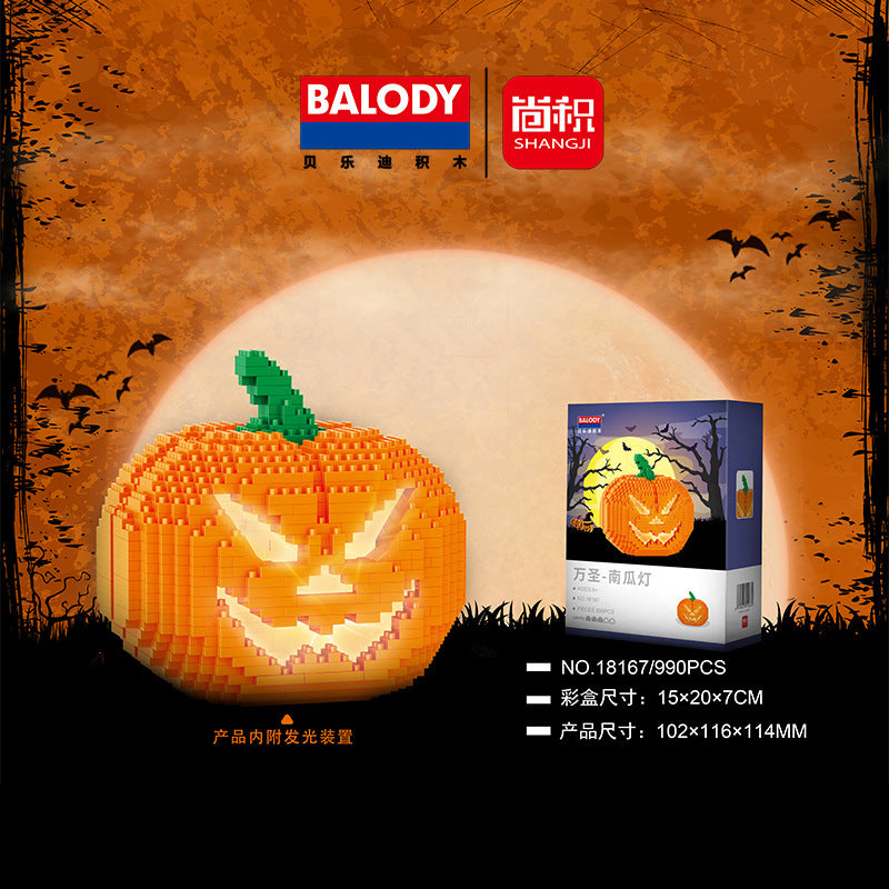Halloween Decoration Pumpkin Lamp Building Blocks Decoration Micro-particle Assembled Toys