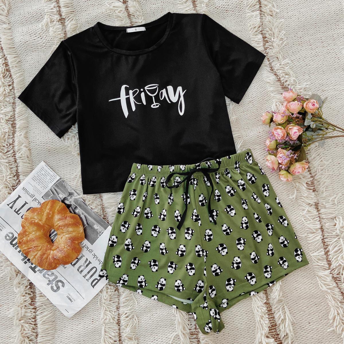 Ladies' Homewear Summer Simple Leisure Short Sleeve Pants Two-piece Set