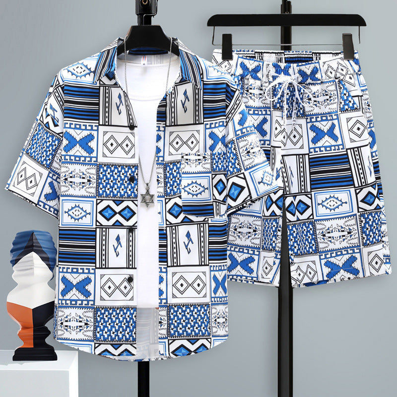 Men's Short-sleeved Suit Youth Student Leisure Sports Cool Shorts Two-piece Set