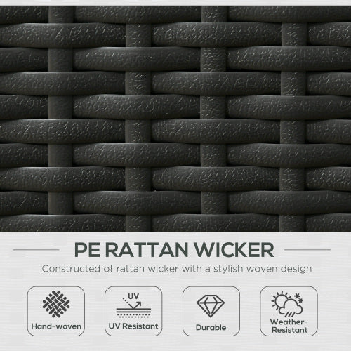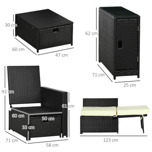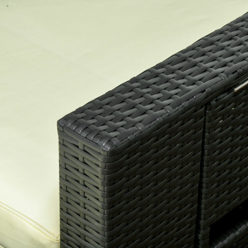 Outsunny 5PC PE Rattan Sun Lounger, Outdoor Wicker 5-level Adjustable Recliner Sofa Bed With Storage Side Table And Footstools, For Patio, Garden, Poolside, Black