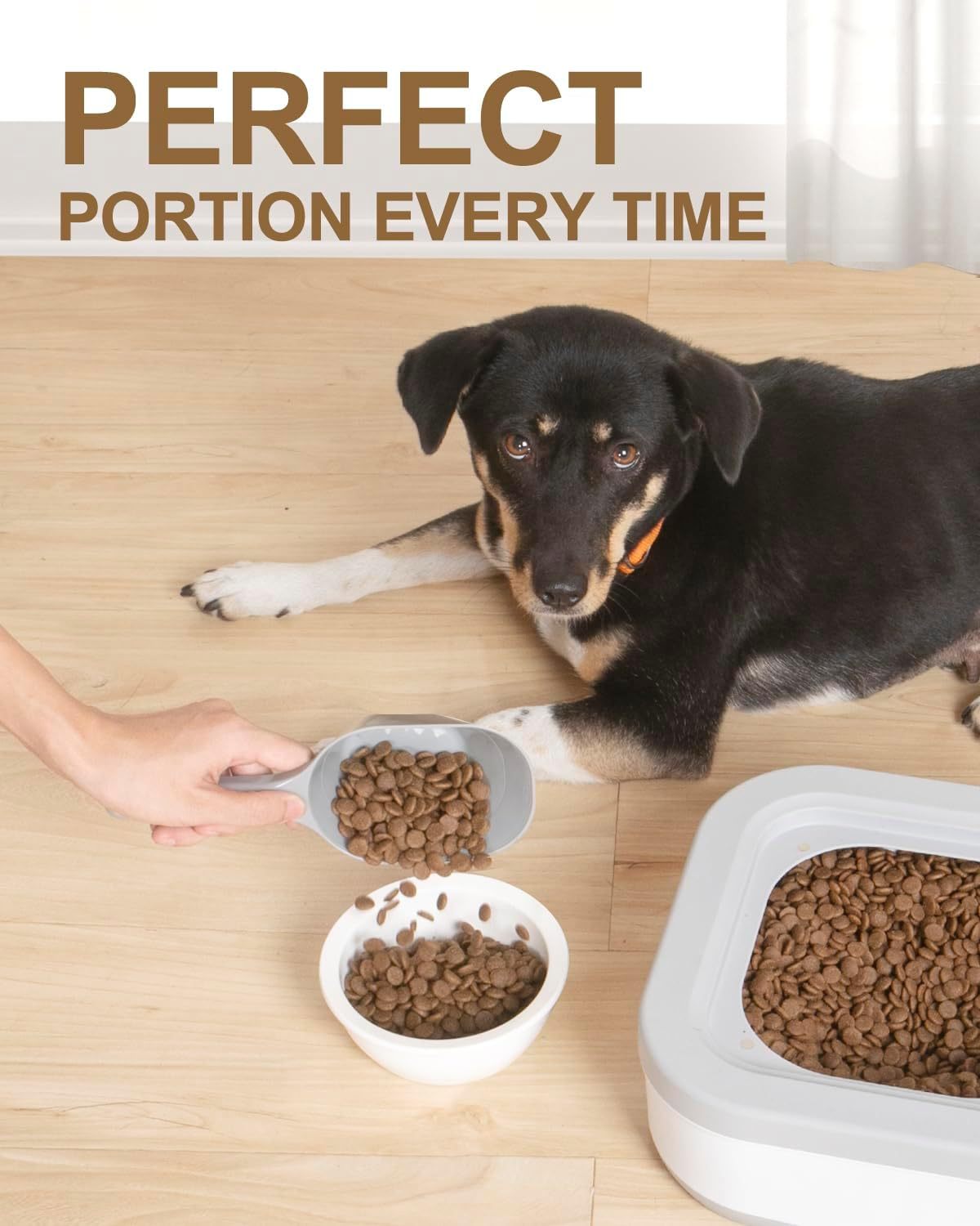 - Measures While You Scoop: This 2 cup capacity pet food scoop includes measurement lines so you can portion servings without a separate measuring cup