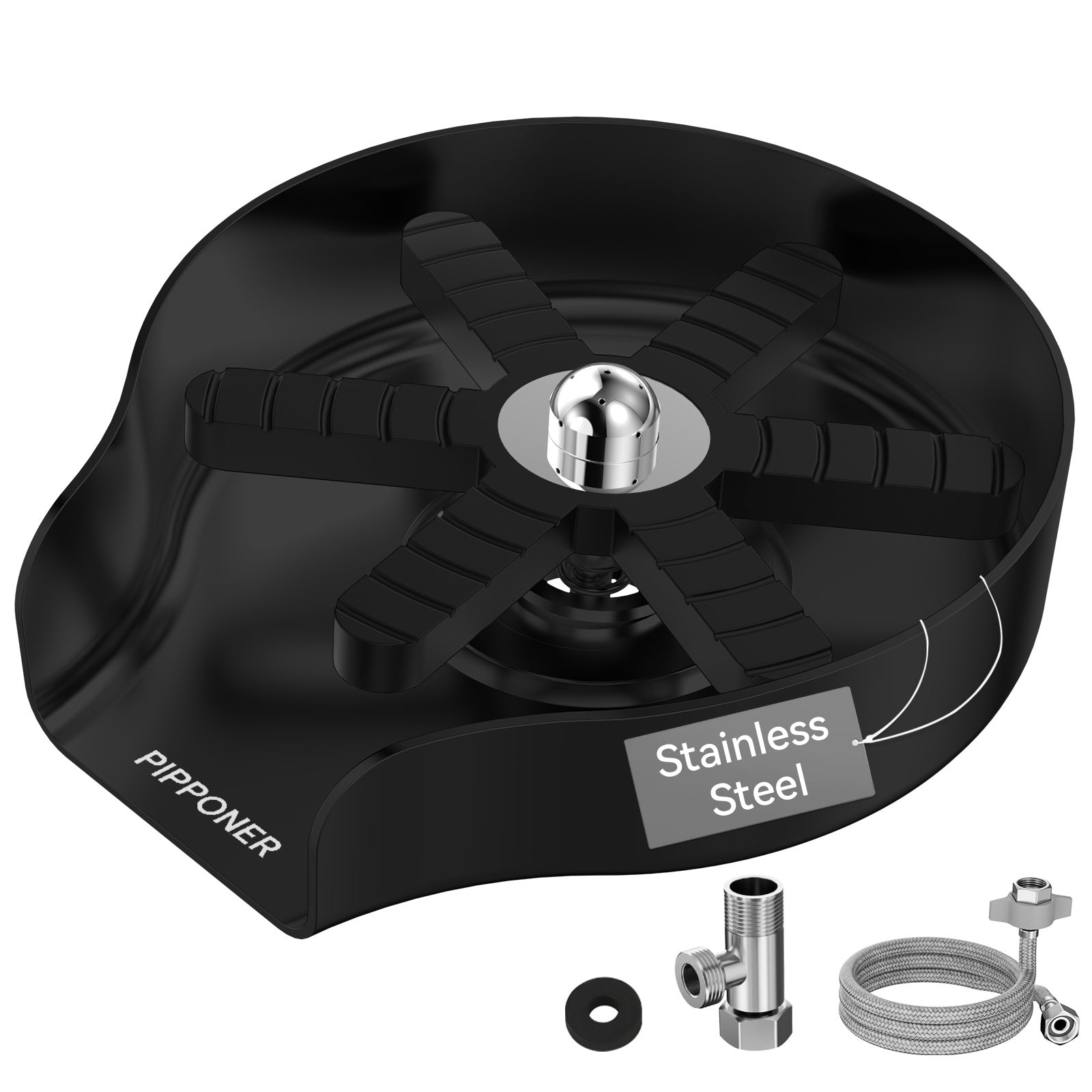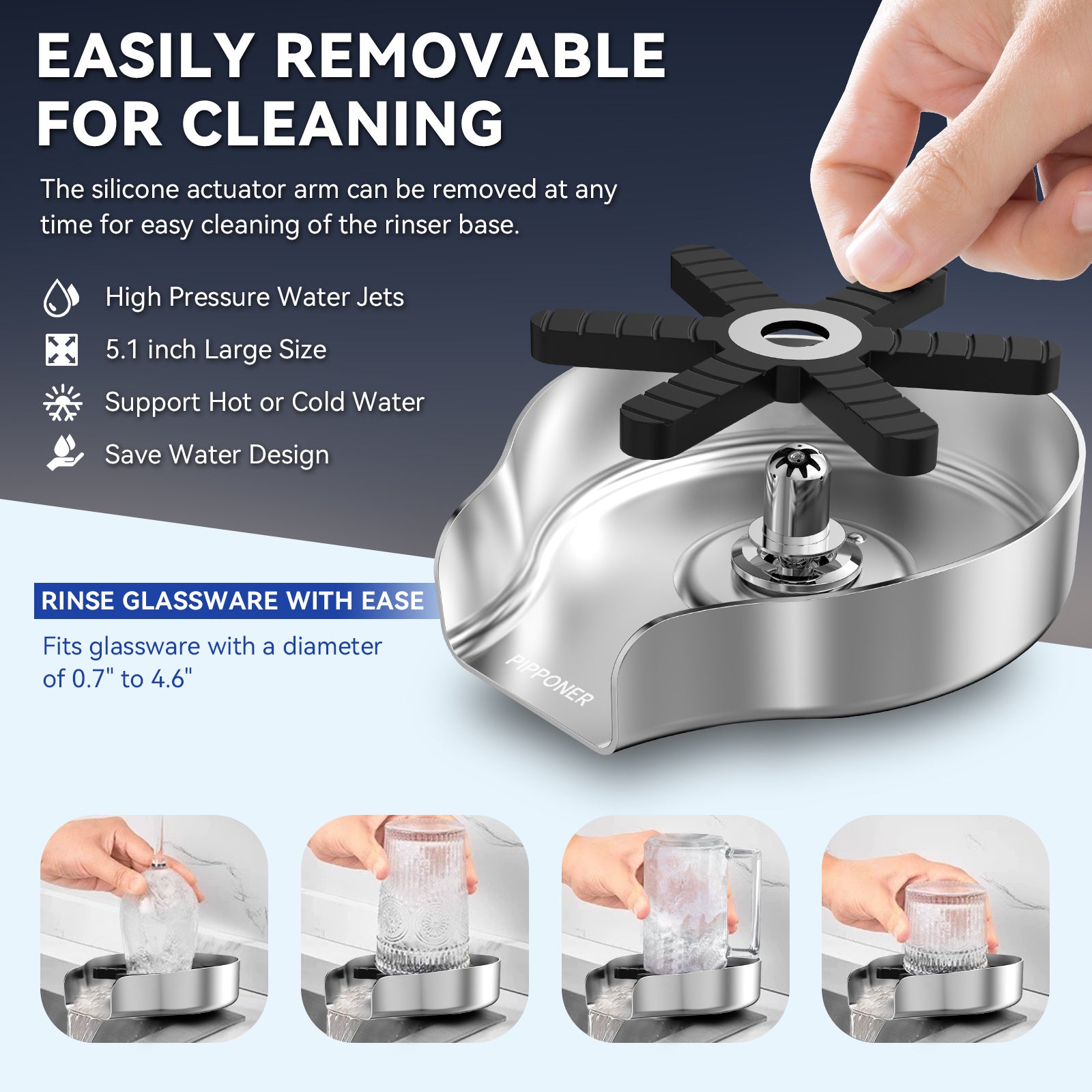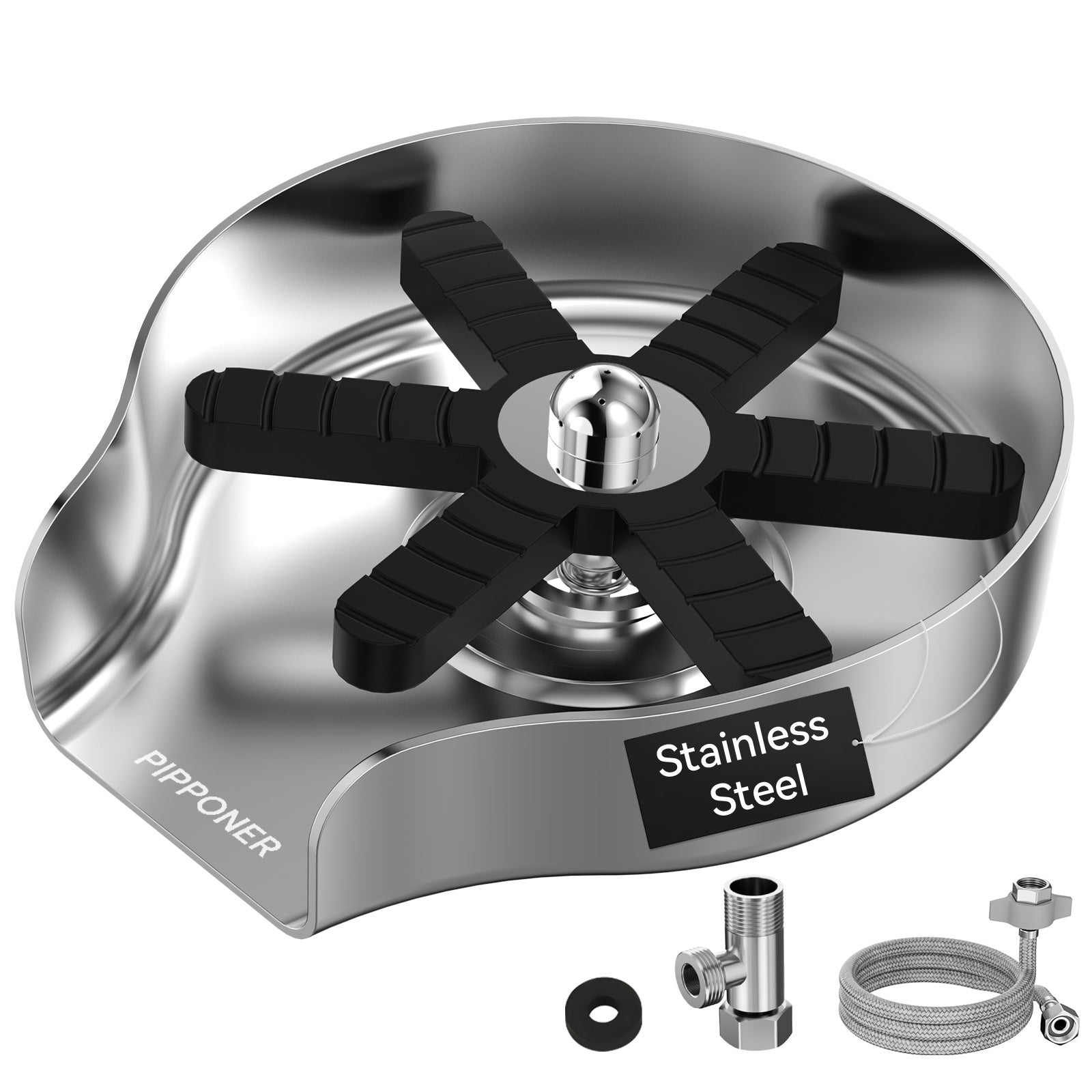 PIPPONER Metal Glass Rinser For Kitchen Sink, 5-inch High Pressure Cup Washer With Hose, Stainless Steel Glass Washer For Sink, DIY Sink Bottle Washer For Home And Commercial Use