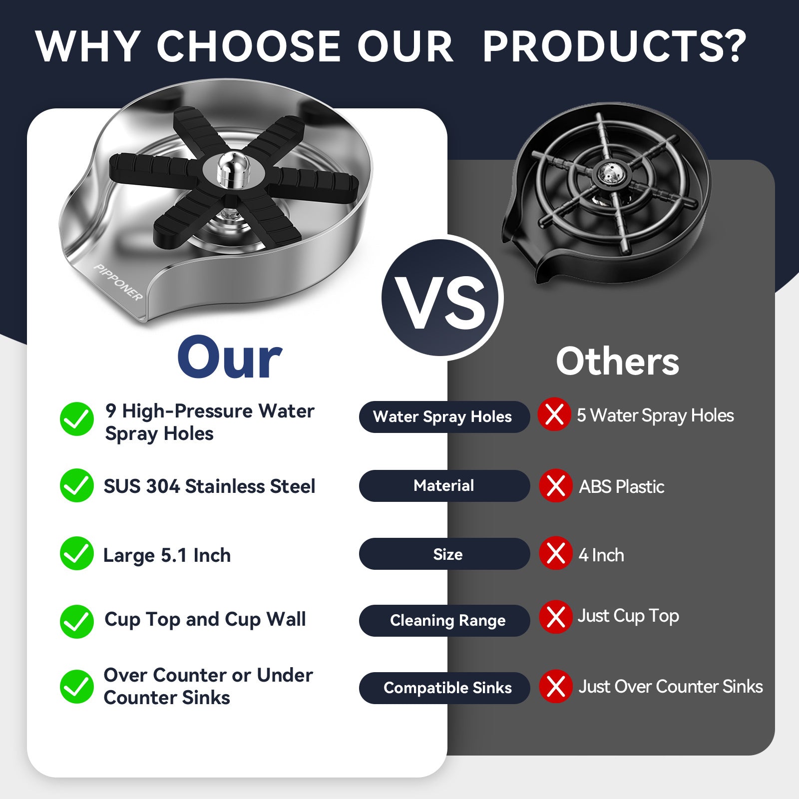 [Larger Size] Our bar glass rinser features a spacious 5 x 5.51-inch design ideal for large countertops. It efficiently rinses a wide range of glassware and doubles as a soap dispenser alternative, making it a perfect kitchen sink accessories