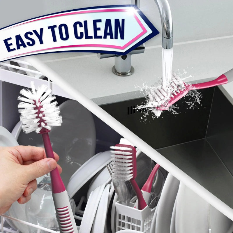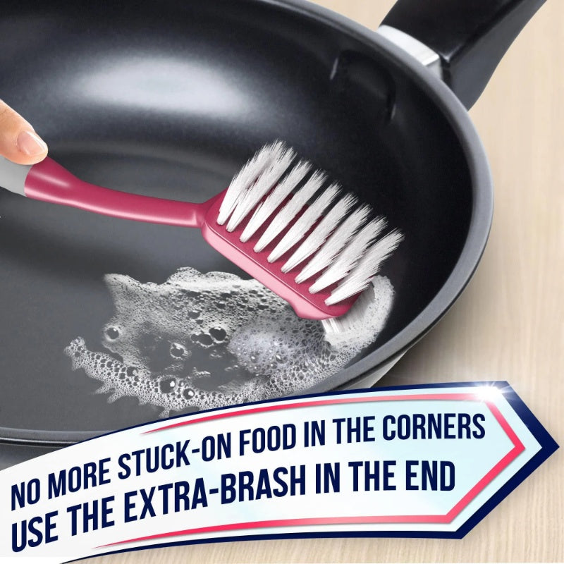 Red Dish Brush Set Of 3 With Bottle Water Brush Dish Scrub Brush And Scrubber Brush For Kitchen Ergonomic Non Slip Long Handle