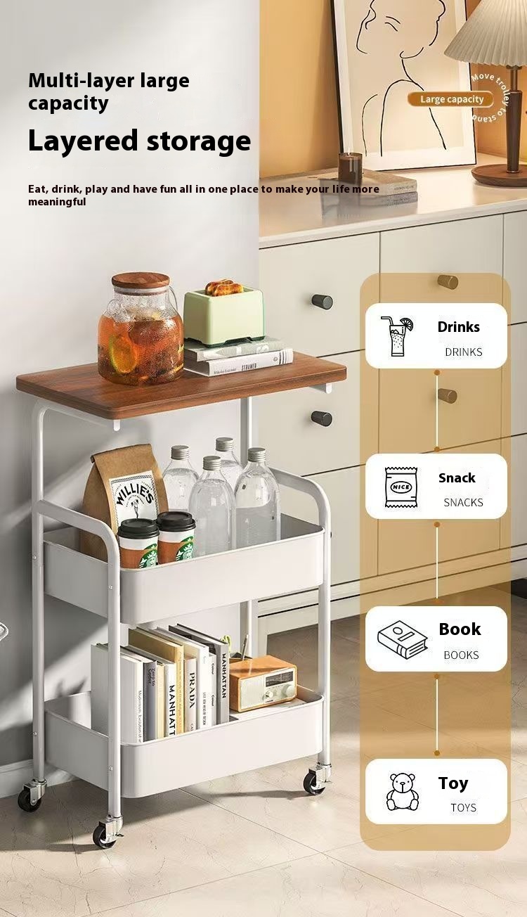 Removable Double-layer Coffee Table Trolley Living Room Sofa Storage Table