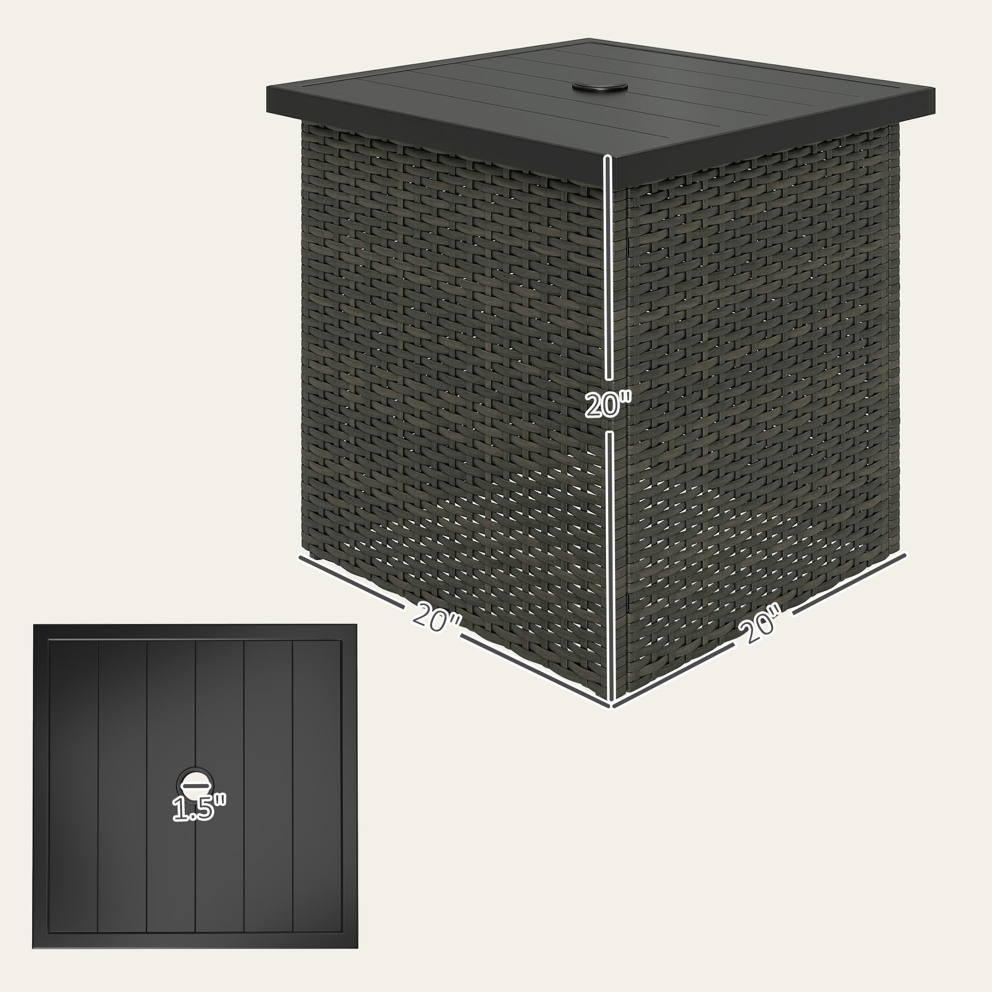 Wicker Side Table With 1.5 Umbrella Hole, Square Outdoor End Table With UV-Resistant Frame, Storage Space, Mixed-Brown