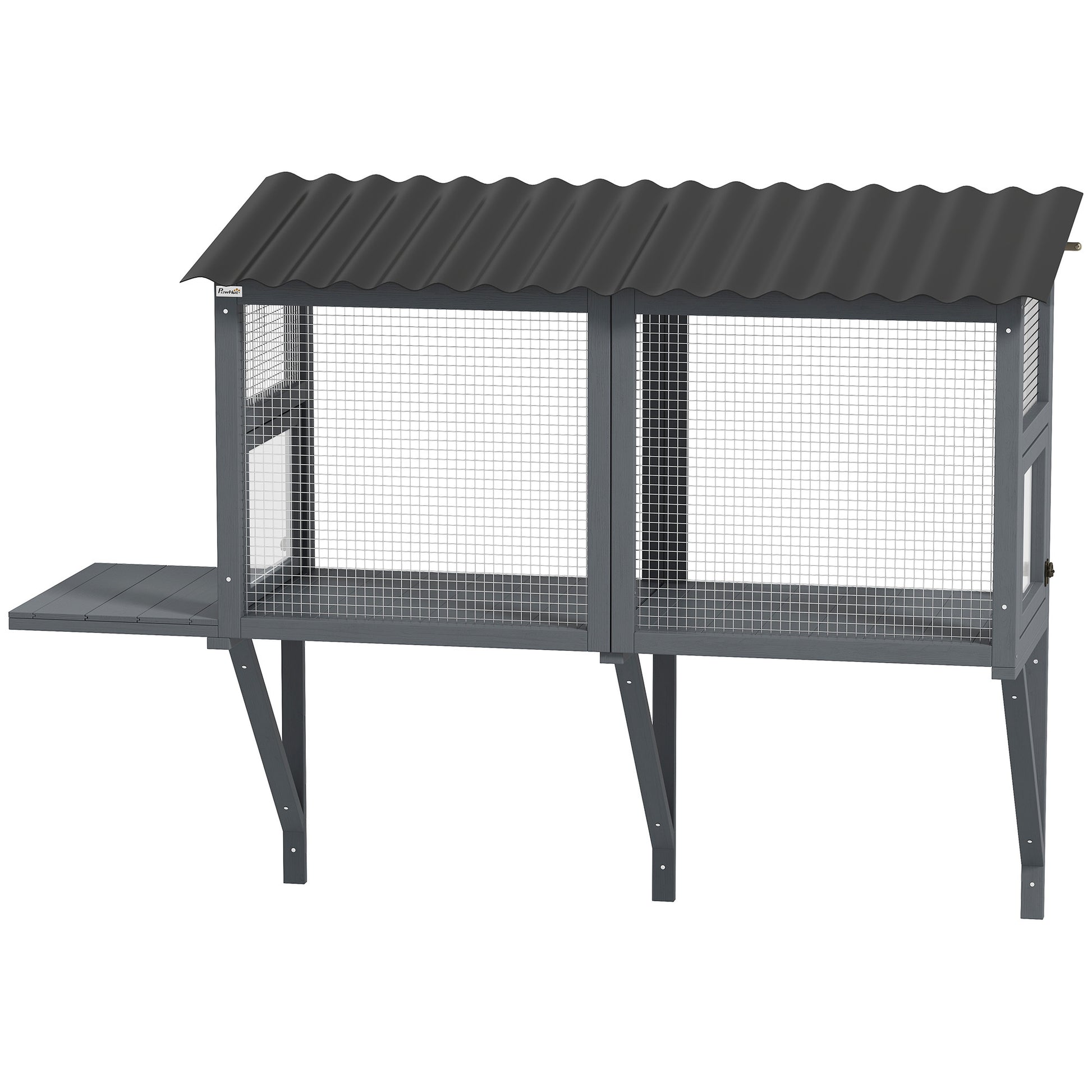 Wooden Cat Catio, Outdoor Cat Enclosure Window Perch With Jumping Platform, For Safely Enjoying Outdoor Sights, Gray